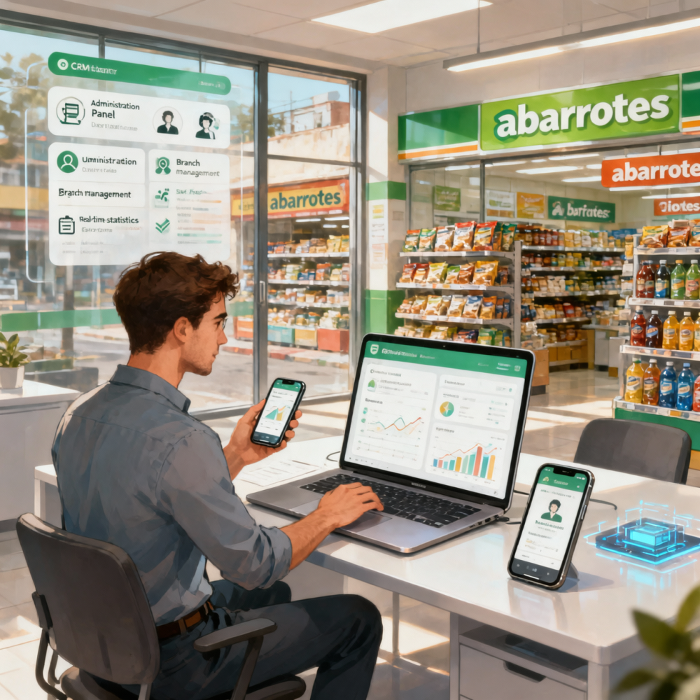 Somos un negocio dedicado a ofrecer soluciones digitales integrales para tiendas de conveniencia. Nuestro CRM incluye una página web personalizada que permite gestionar clientes, productos y pedidos de manera profesional y eficiente, optimizando la administración y experiencia de tus clientes.